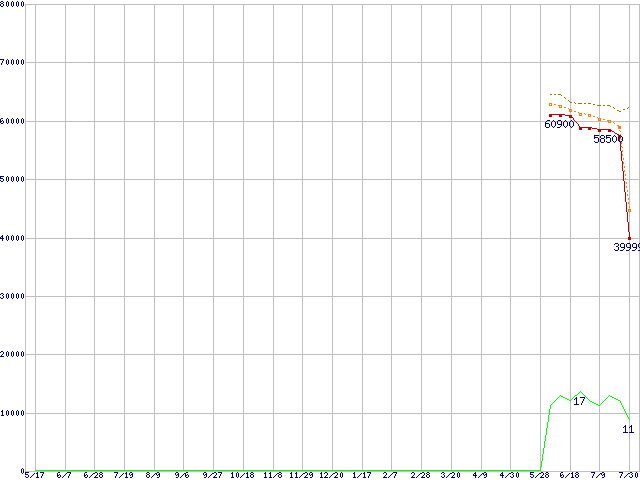 | Athlon 64 3500+(2.2GHz,L2 512KB) リテールパッケージの価格推移 |