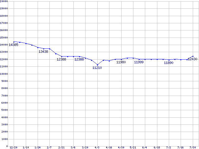 | [↑前グラフ]: | Socket A (OPGA,FSB 333MHz,L2 512KB,Barton)の最安値推移 |