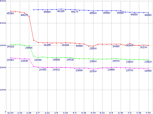 | [↑前グラフ]: | Socket 478 (FC-PGA2,FSB 800MHz,L2 1MB,Hyper-Threading,Prescott)の最安値推移 |