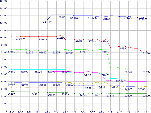 | [↑前グラフ]: | Socket 604 (FCBGA,FSB 800MHz,L2 1MB,Nocona)の最安値推移 |