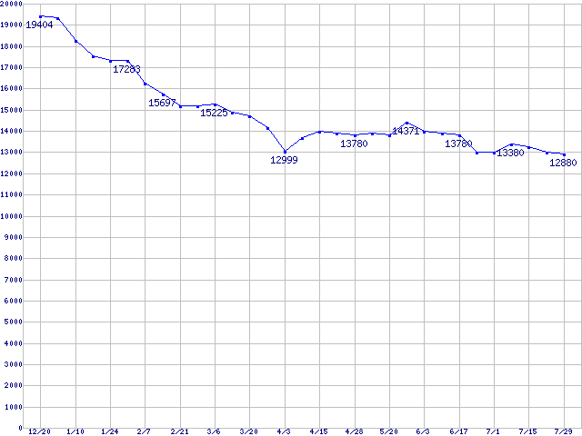 | [↓次グラフ]: | Barracuda 7200.7 Plus (7200rpm,UltraATA/100,8MB,80GB/Platter,FDB)の最安値推移 |