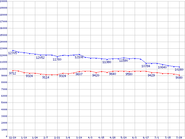 | [↑前グラフ]: | Barracuda 7200.7 Plus (7200rpm,UltraATA/100,8MB,100GB/Platter,FDB)の最安値推移 |