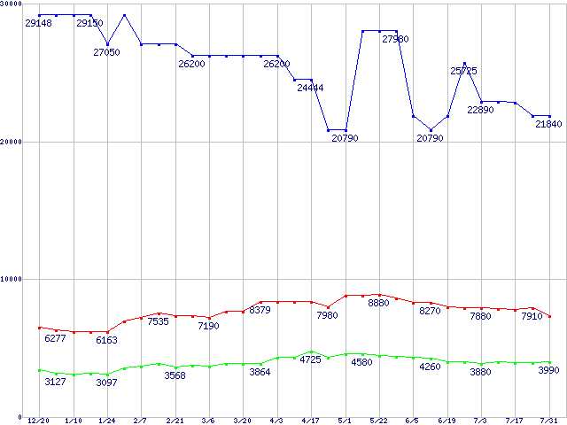 | [↑前グラフ]: | PC4300(DDR533) DDR SDRAM DIMMの最安値推移 |