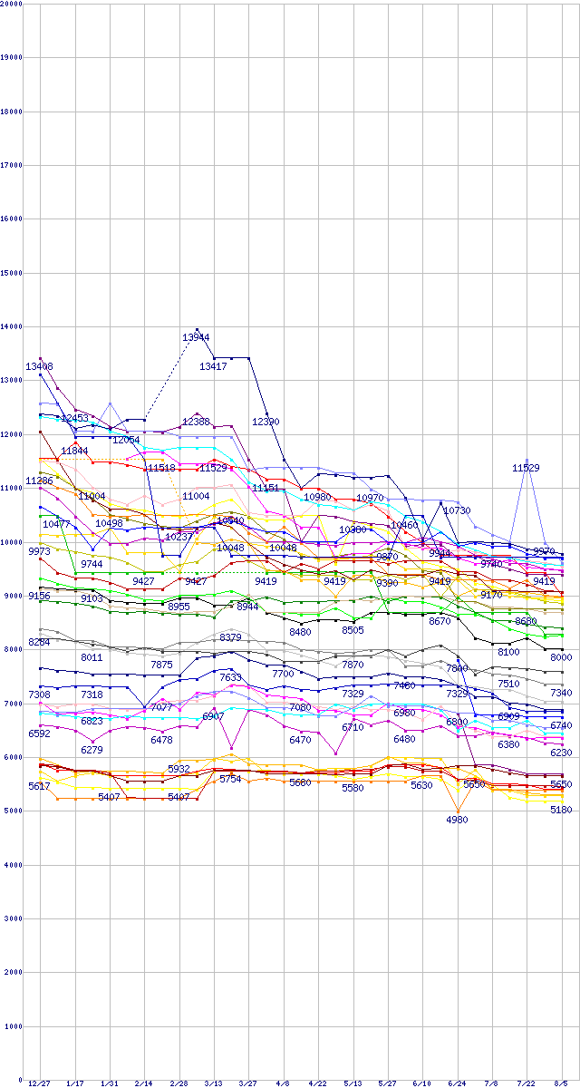 ※製品名をクリックすると個別のグラフを表示します ※点線部は販売店が確認できなかった、または調査データがないことを示します |