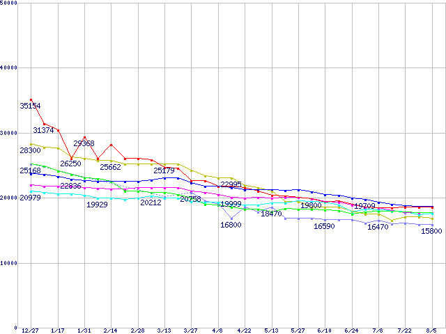 | [↓次グラフ]: | HDD主要製品(最安値2万円以上)の最安値推移 |