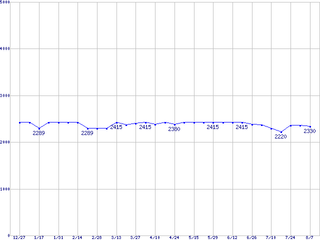 | [↓次グラフ]: | メモリ主要製品(最安値5千円未満)の最安値推移 |