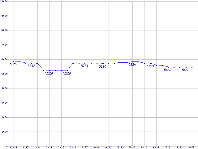 | [↑前グラフ]: | DiamondMax 16 (5400rpm,UltraATA/133,2MB,80GB/Platter,FDB)の最安値推移 |