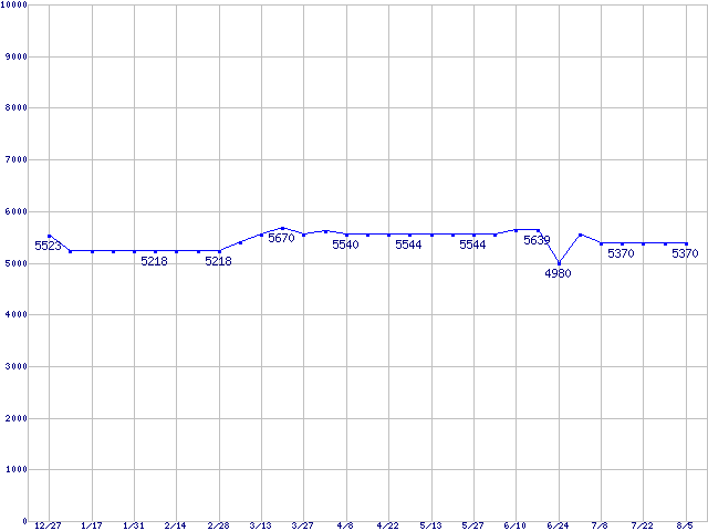 | [↑前グラフ]: | Barracuda 5400.1 (5400rpm,UltraATA/100,2MB,FDB)の最安値推移 |