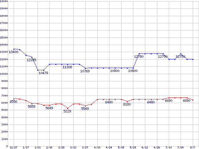 | [↑前グラフ]: | PC3200(DDR400) DDR SDRAM DIMM ECC対応 Registeredタイプの最安値推移 |