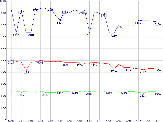 | [↑前グラフ]: | PC2 3200(DDR2 400) DDR2 SDRAM DIMM ECC対応 Registeredタイプの最安値推移 |
