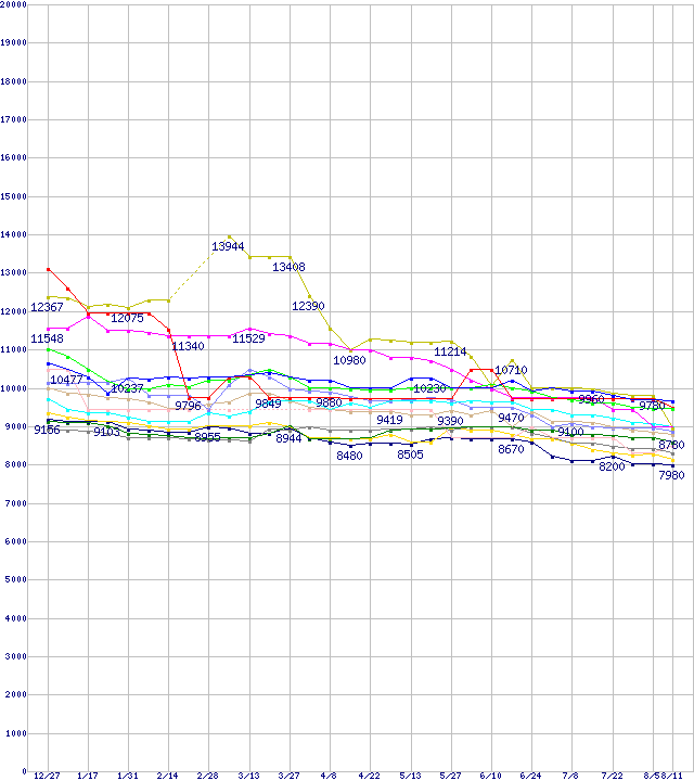 ※点線部は販売店が確認できなかった、または調査データがないことを示します