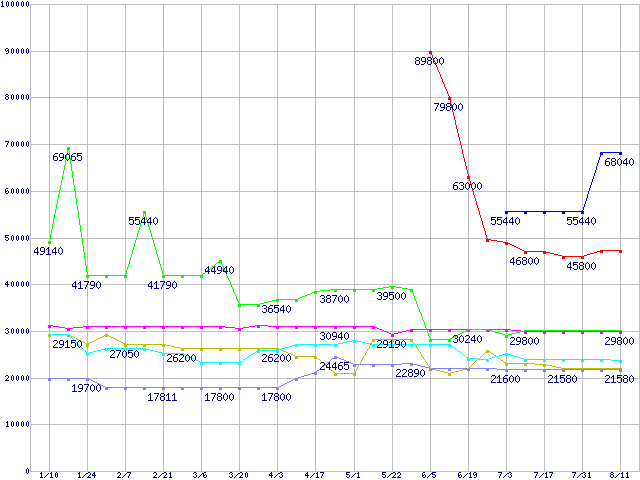 | [↑前グラフ]: | メモリ主要製品の最安値推移 |