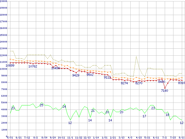 | Athlon XP 2400+ (2GHz) リテールパッケージの価格推移 |
