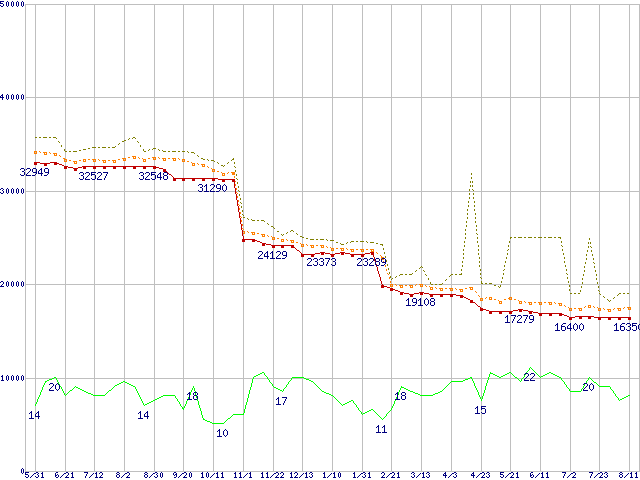 | Athlon XP 3000+ (2.17GHz) リテールパッケージの価格推移 |