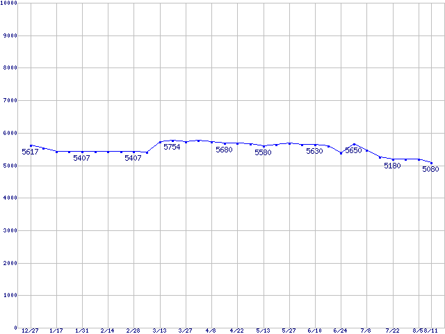 | Barracuda 5400.1 (5400rpm,UltraATA/100,2MB,FDB)の最安値推移 |