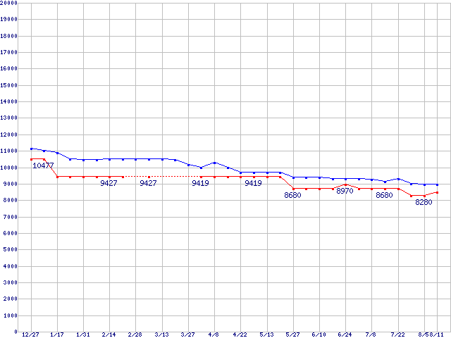 | [↑前グラフ]: | SpinPoint P80 (7200rpm,UltraATA/133,8MB)の最安値推移 |