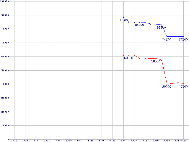 | [↑前グラフ]: | CPU主要製品(最安値6万円以上)の最安値推移 |
