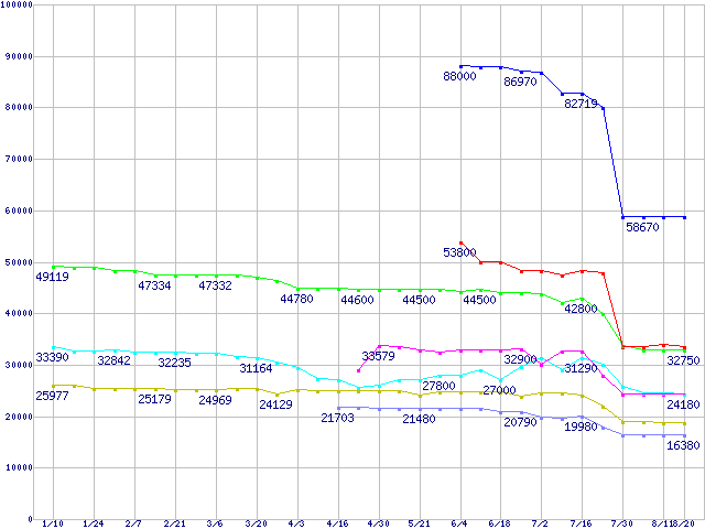 | [↑前グラフ]: | Socket 940・FSB 800MHzの最安値推移 |