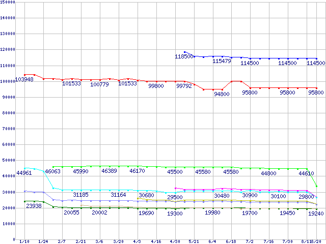| [↑前グラフ]: | LGA 775・FSB 800MHzの最安値推移 |