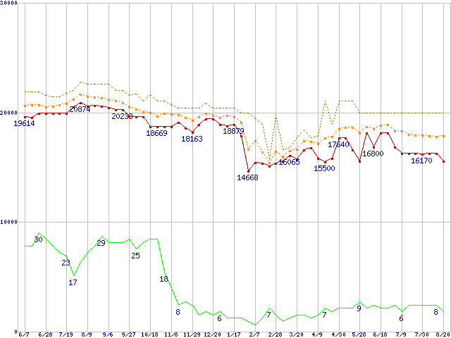 CPU主要製品(最安値1万円~2万円未満)の最安値推移