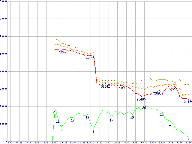 | Athlon 64 3200+(2GHz,L2 1MB) リテールパッケージの価格推移 |
