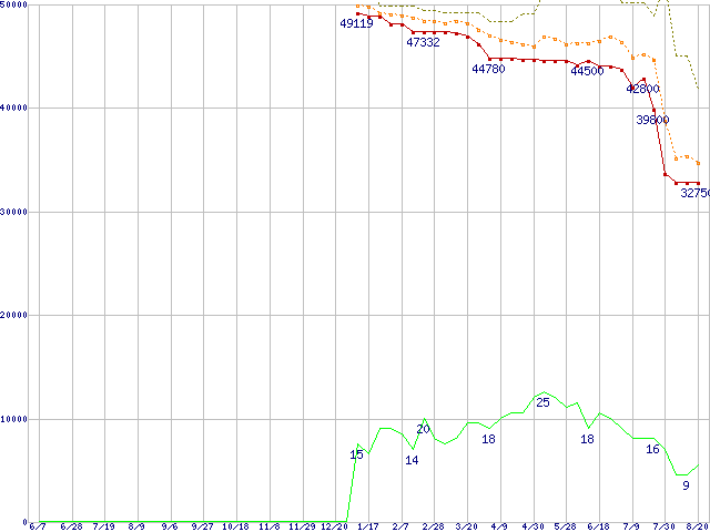 | Athlon 64 3400+(2.2GHz,L2 1MB) リテールパッケージの価格推移 |