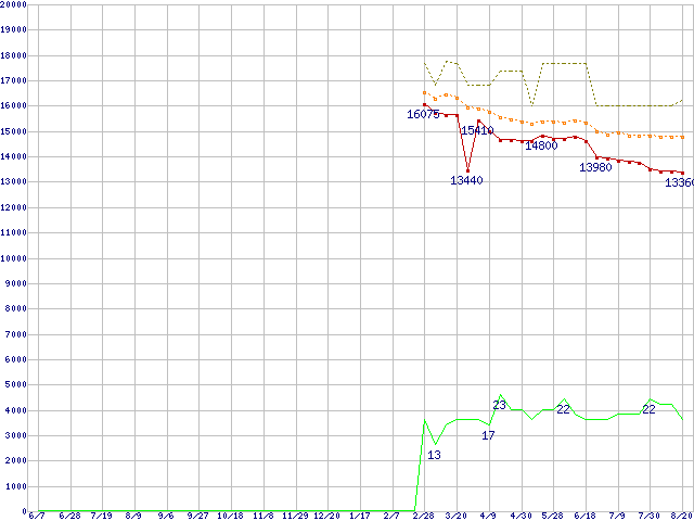 Socket 478 (FC-PGA2,FSB 533MHz,L2 1MB,Prescott)の最安値推移