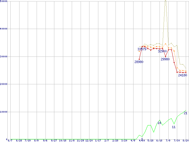 | Athlon 64 3200+(2.2GHz,L2 512KB) リテールパッケージの価格推移 |