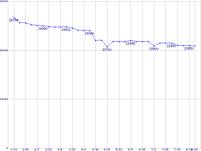 | Socket A (OPGA,FSB 400MHz,L2 512KB,Barton)の最安値推移 |