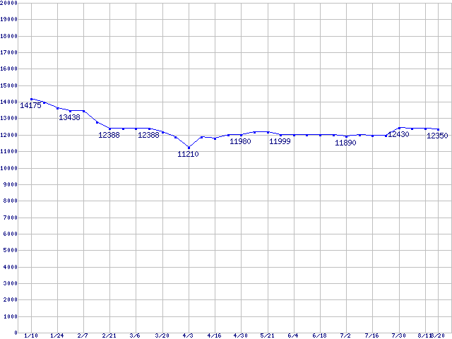 | [↑前グラフ]: | Socket A (OPGA,FSB 333MHz,L2 512KB,Barton)の最安値推移 |