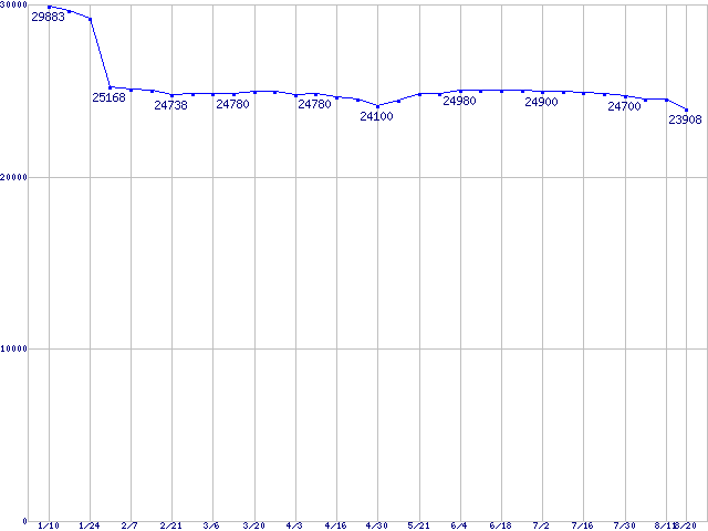 | Socket 478 (FC-PGA2,FSB 533MHz,L2 512KB,Hyper-Threading,Northwood)の最安値推移 |