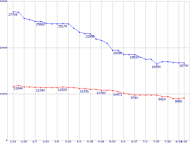 | [↑前グラフ]: | WD Raptor (10000rpm,SerialATA/150,8MB)の最安値推移 |