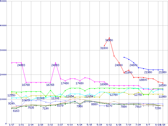 1GBモジュールの最安値推移