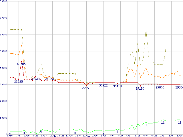 | PC2700 DDR SDRAM 1GB(CL2.5) ECC Registeredの価格推移 |