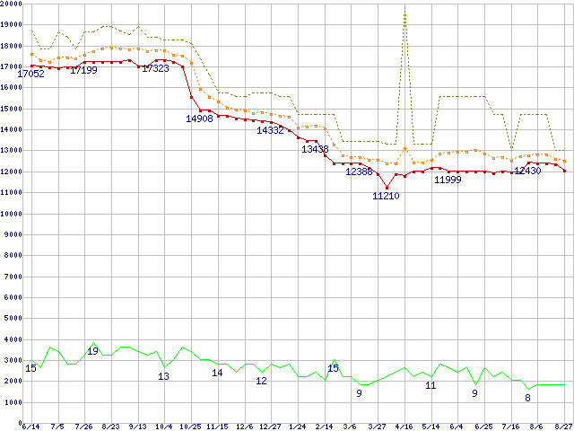 | Athlon XP 2700+ (2.17GHz) リテールパッケージの価格推移 |