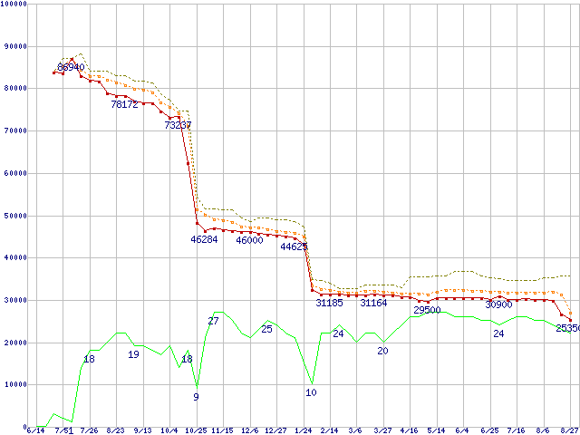 Socket 478 (FC-PGA2,FSB 800MHz,L2 512KB,Hyper-Threading,Northwood)の最安値推移