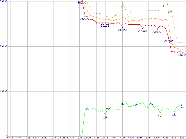 | Athlon 64 3000+(2GHz,L2 512KB) リテールパッケージの価格推移 |
