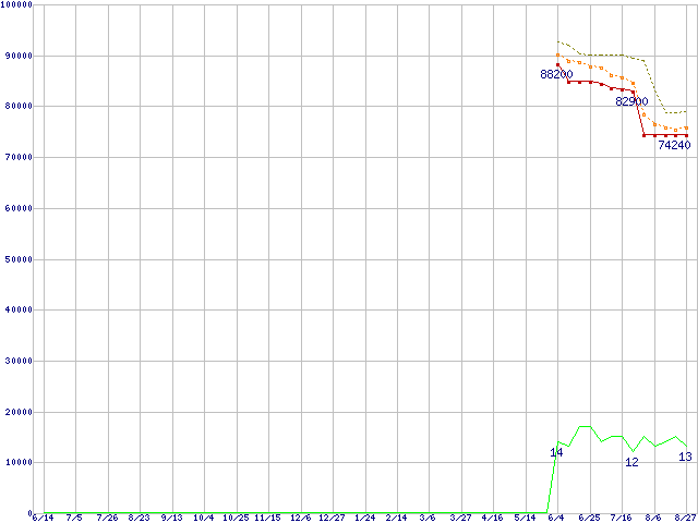 | Athlon 64 3800+(2.4GHz,L2 512KB) リテールパッケージの価格推移 |