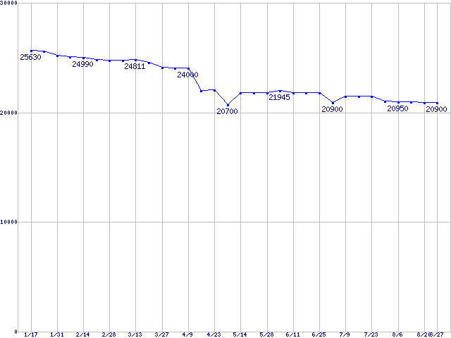 | Socket A (OPGA,FSB 400MHz,L2 512KB,Barton)の最安値推移 |