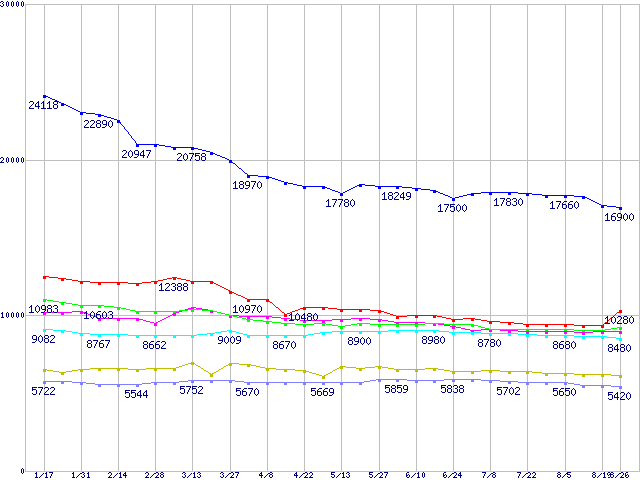 | [↑前グラフ]: | Deskstar 7K400 (7200rpm,UltraATA/100,FDB)の最安値推移 |