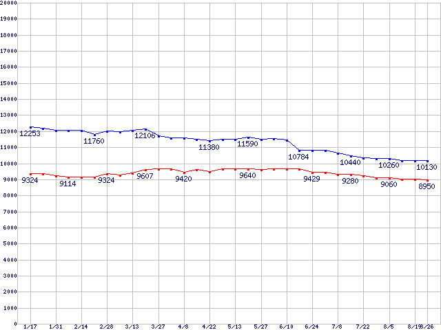 | [↑前グラフ]: | Barracuda 7200.7 Plus (7200rpm,UltraATA/100,8MB,100GB/Platter,FDB)の最安値推移 |