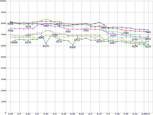 HDD 30GB~80GB未満の最安値推移