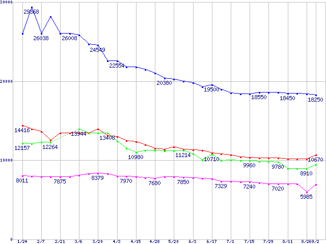 | [↑前グラフ]: | Deskstar 7K400 (7200rpm,SerialATA/150,FDB)の最安値推移 |
