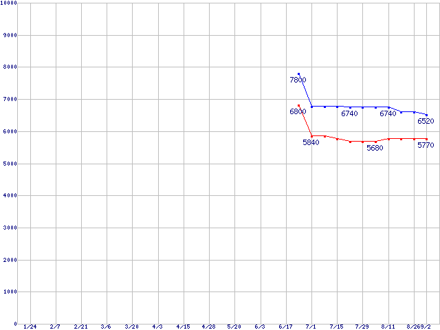 | [↑前グラフ]: | Deskstar 7K250 (7200rpm,UltraATA/100,FDB)の最安値推移 |