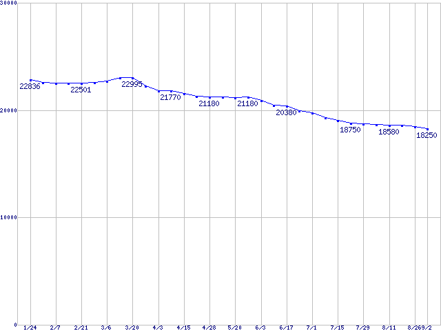 | [↑前グラフ]: | DiamondMax 10 (7200rpm,SerialATA II,FDB)の最安値推移 |