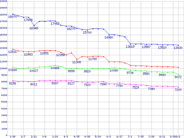 | [↑前グラフ]: | MaXLine Plus II (7200rpm,8MB,SerialATA/150,FDB)の最安値推移 |