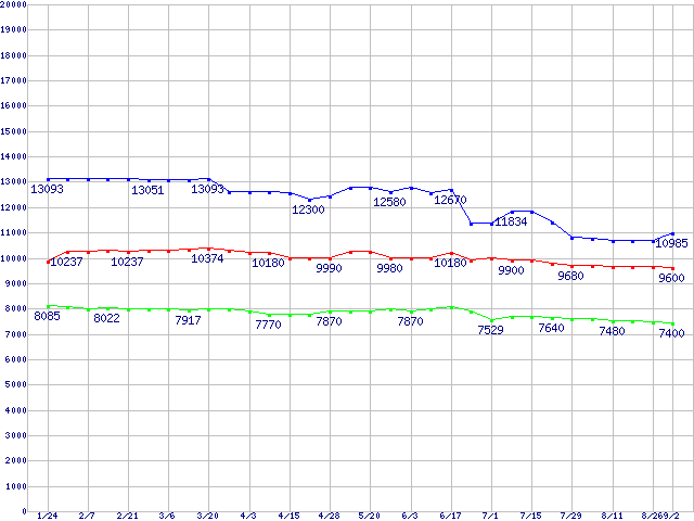 | [↓次グラフ]: | Barracuda 7200.7 Plus (7200rpm,UltraATA/100,8MB,100GB/Platter,FDB)の最安値推移 |