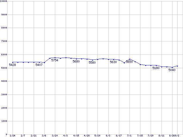 | Barracuda 5400.1 (5400rpm,UltraATA/100,2MB,FDB)の最安値推移 |