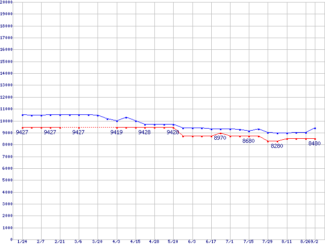 | [↑前グラフ]: | SpinPoint P80 (7200rpm,UltraATA/133,8MB)の最安値推移 |