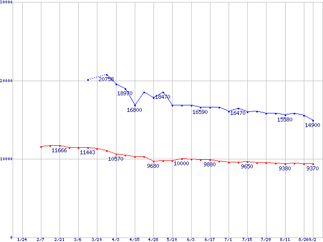 | WD Caviar(Special Edition) (7200rpm,UltraATA/100,8MB)の最安値推移 |
